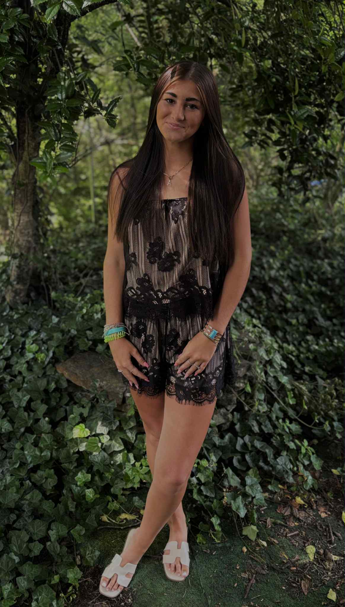 Romantic and effortlessly elegant, the Moonlight Muse Lace Set is your go-to for an elevated evening look. This strapless beauty features a sheer black lace overlay with floral embroidery and scalloped hem detailing, perfectly layered over a nude lining for a flirty contrast. The relaxed fit keeps it breezy, while the intricate lace adds just the right touch of drama. Perfect for rooftop dinners, date nights, or when you just want to feel a little extra.