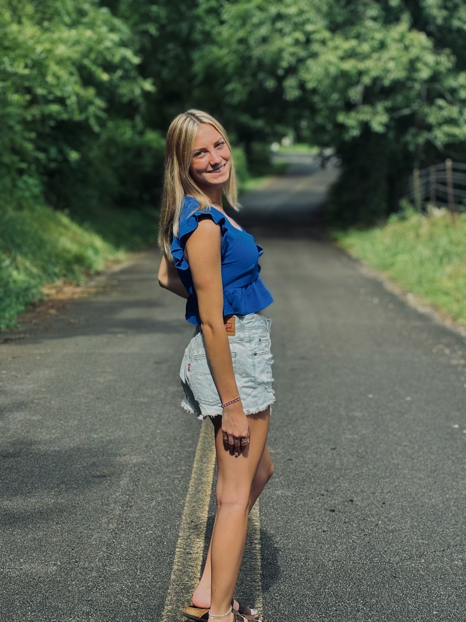 Flirty, feminine, and full of charm — the Ocean Breeze Tie-Front Top is your new summer fave. Featuring a plunging V-neckline with a playful tie-front detail and ruffled flutter sleeves, this vibrant cobalt blue top adds a pop of fun to any outfit. The peplum-style hem gives it a flattering, flowy finish that pairs effortlessly with shorts, skirts, or high-rise denim. Perfect for beachside strolls or brunch with the girls!